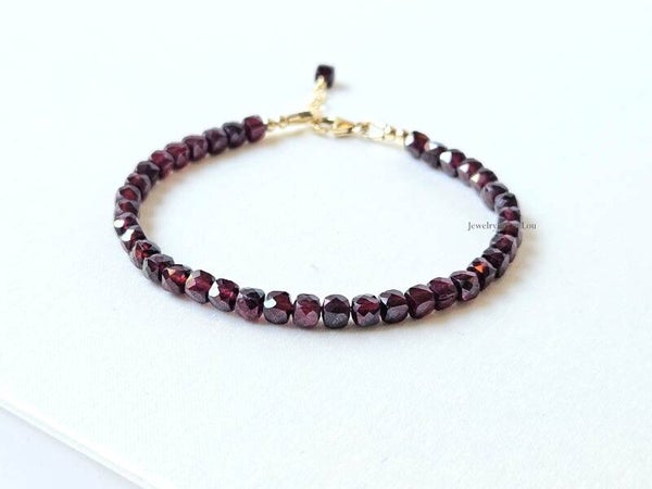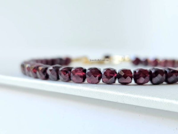 Beautiful AAA red Mozambique garnet bead bracelet. The color and sparkle of these cube-cut beads are truly stunning.