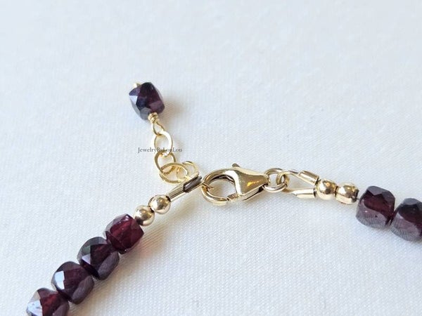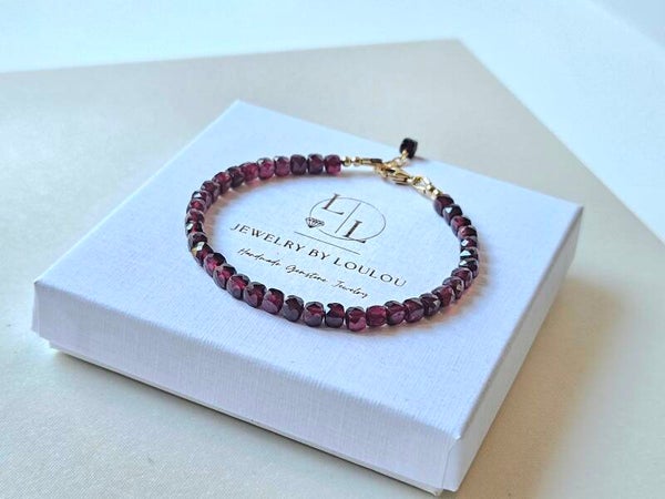 Mozambique Garnet beaded bracelet 4mm, 14k gold-filled - 925 sterling silver