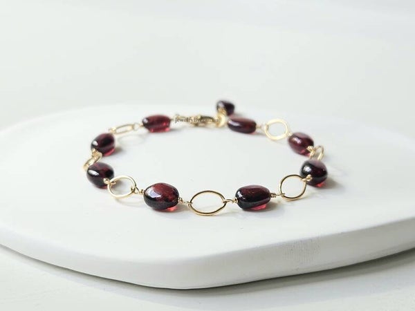 Mozambique Garnet beaded link bracelet, 14k gold-filled - 925 sterling silver