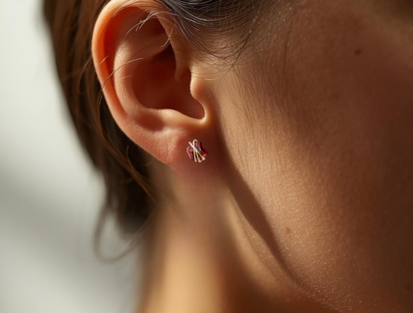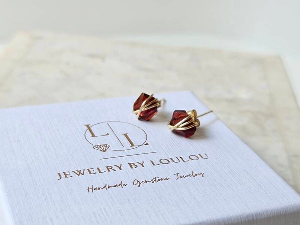 Charming handmade small gemstone stud earrings with faceted garnet beads. The burgundy stones are natural, undyed, and free-form cut, so each stone is unique.