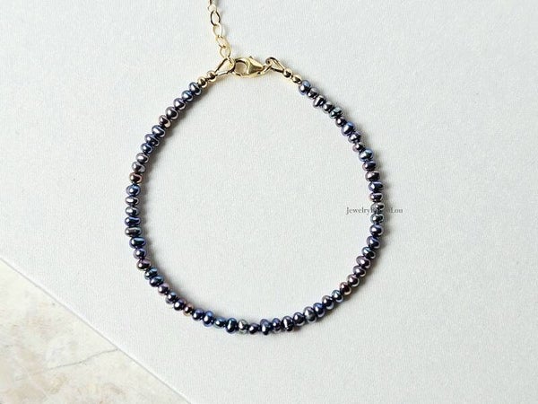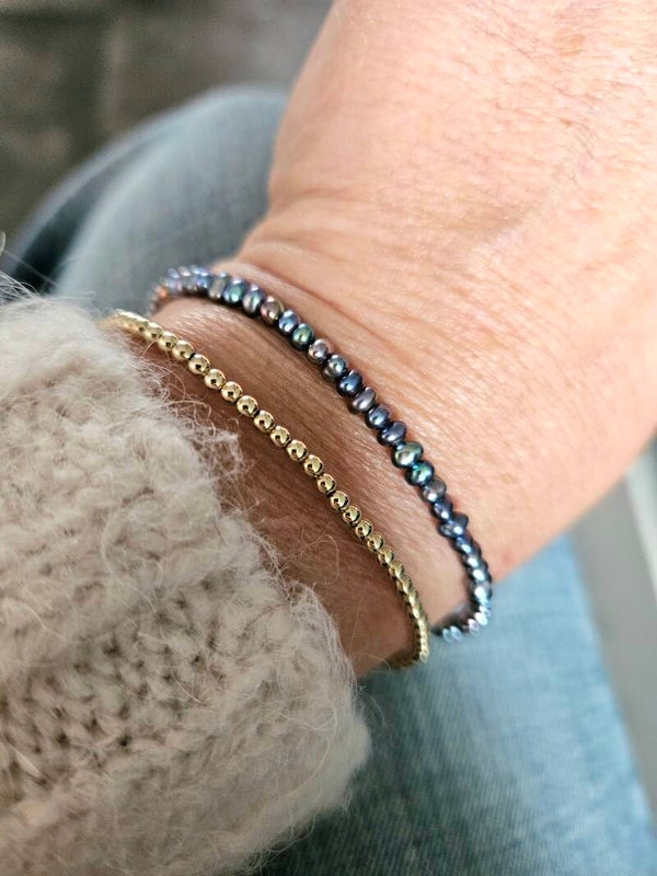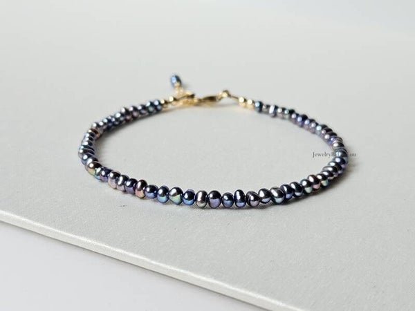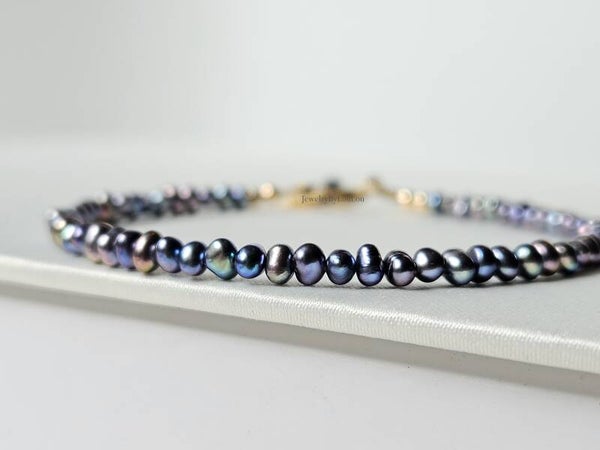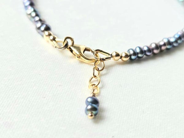Peacock freshwater pearl beaded bracelet, 14k gold-filled - 925 sterling silver
