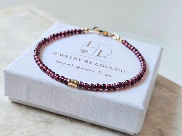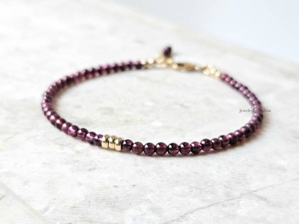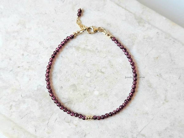 Rhodolite Garnet bead bracelet 3mm, 14k gold-filled - 925 sterling silver