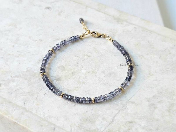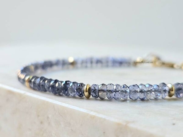 Iolite bead bracelet, 14k gold-filled - 925 sterling silver