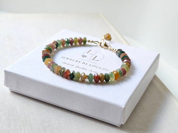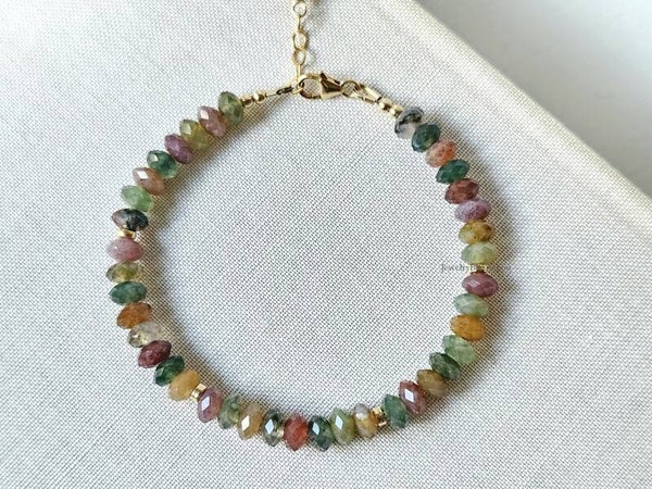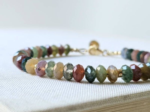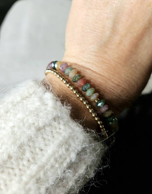 Indian agate bead bracelet, 14k gold-filled - 925 sterling silver