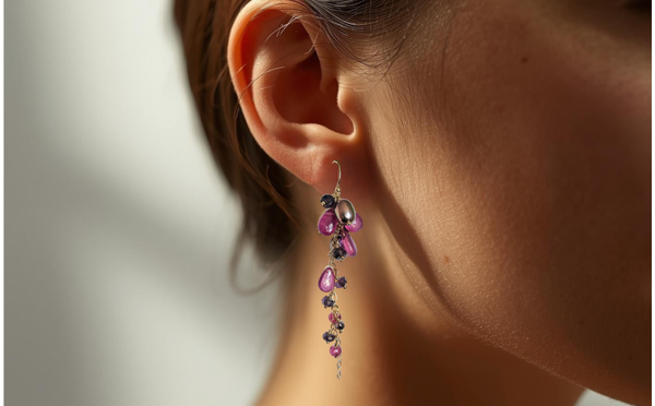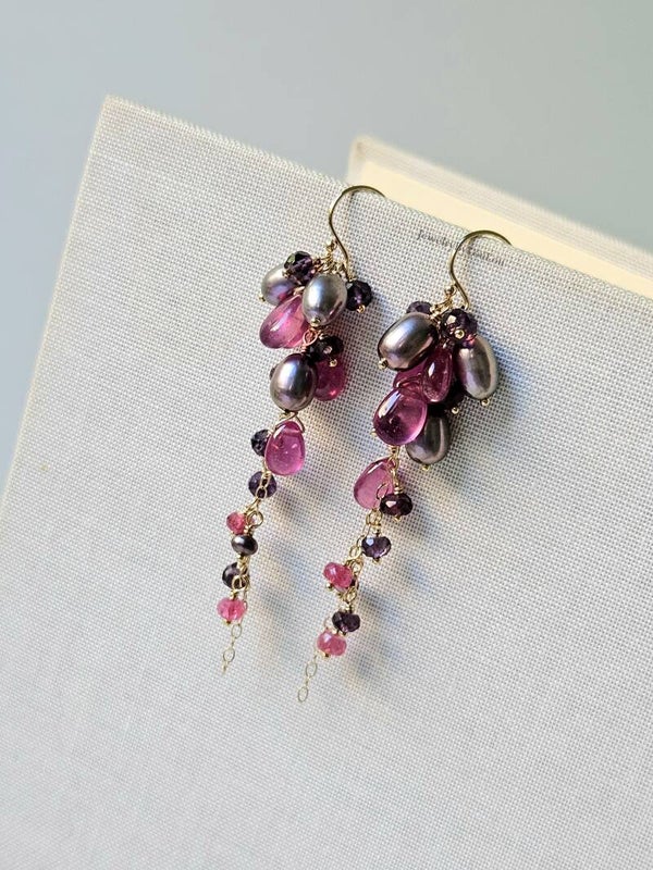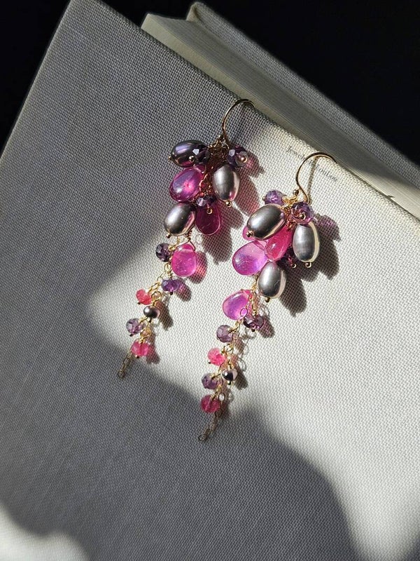 - Pink sapphire drops, mauve spinel beads, mauve colored freshwater pearls