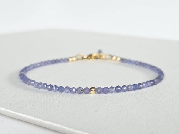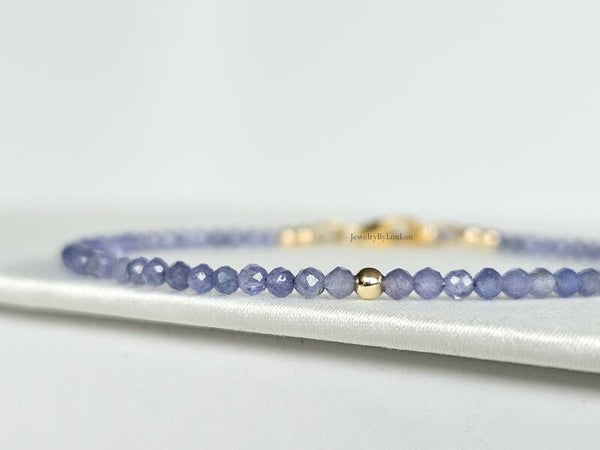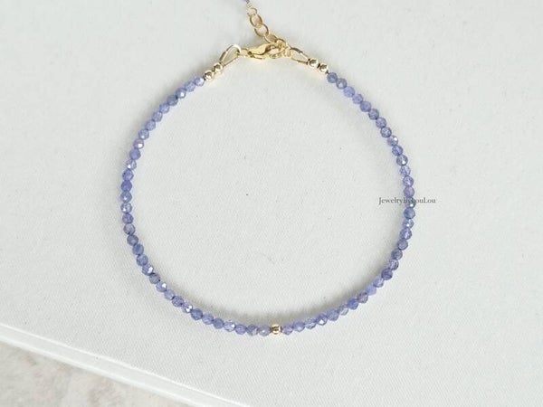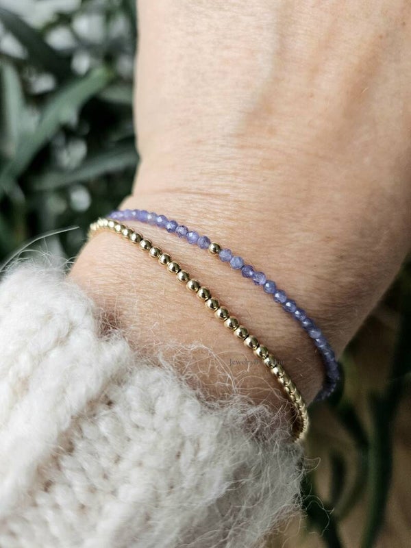 Natural tanzanite bracelet 2mm, 14k gold-filled - 925 sterling silver