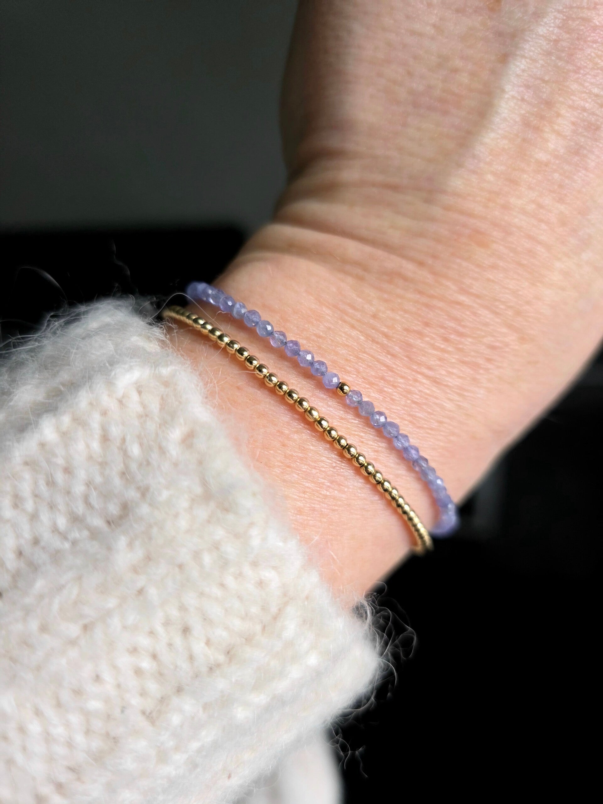 Een minimalistische armband met tanzanietkralen van 2 mm. Prachtig om alleen te dragen of te combineren met onze andere armbanden.