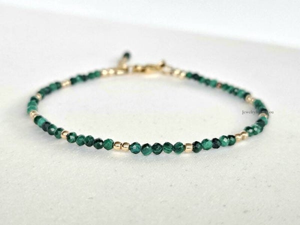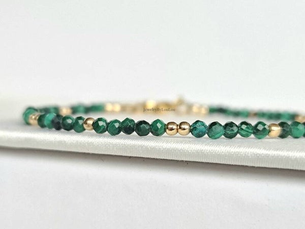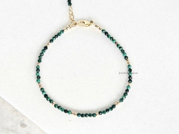 Malachite beaded bracelet, 14k goldfilled - 925 sterling silver