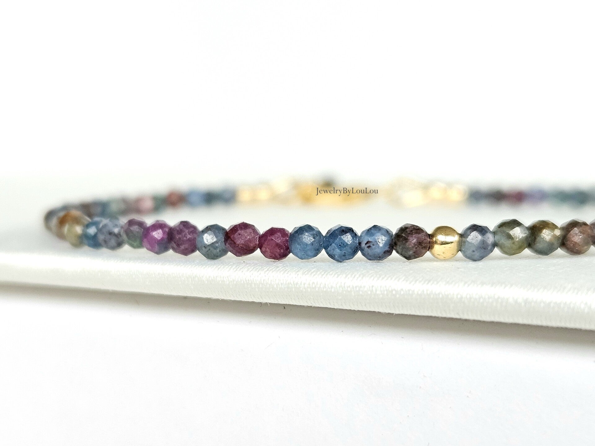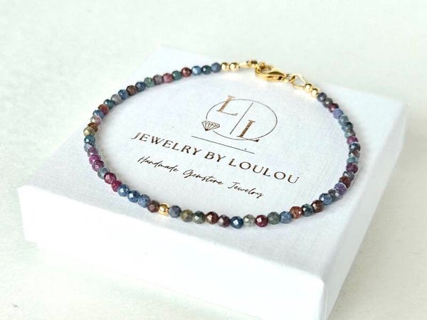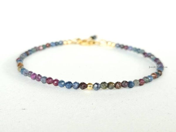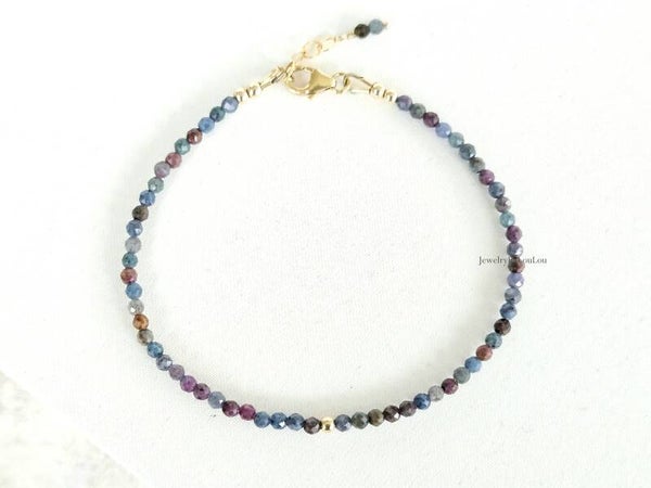 Ruby-Fuchsite in Kyanite beaded bracelet 3mm, 14k gold-filled - 925 sterling silver