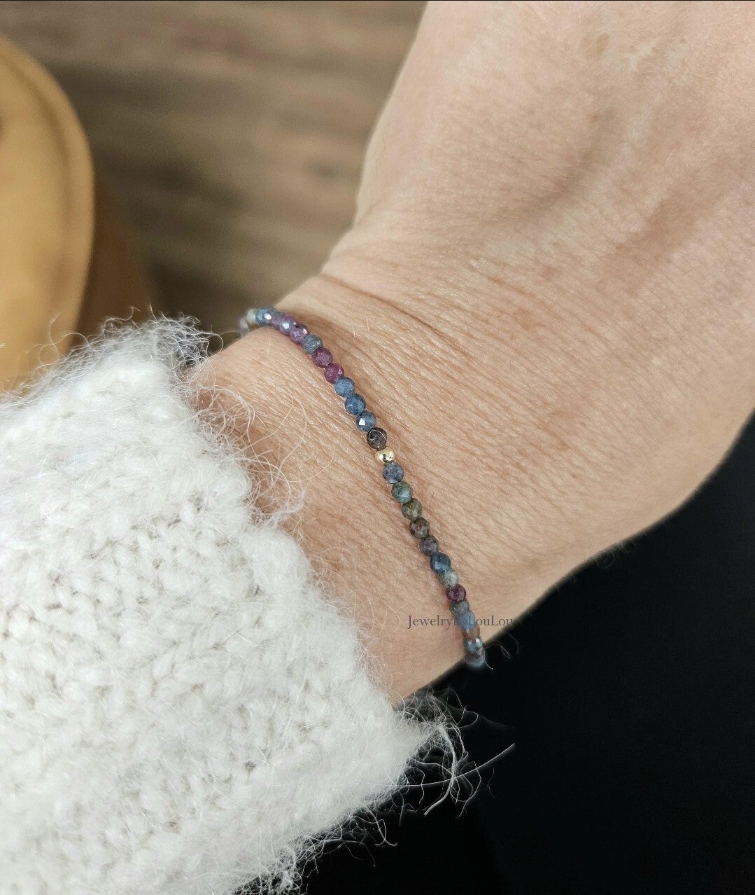 This delicate, fine bracelet with natural, untreated ruby-fuchsite in kyanite beaded gemstones brings you peace and protection where you need it. The gemstones are beautifully colored and combines beautifully with the new autumn colours.