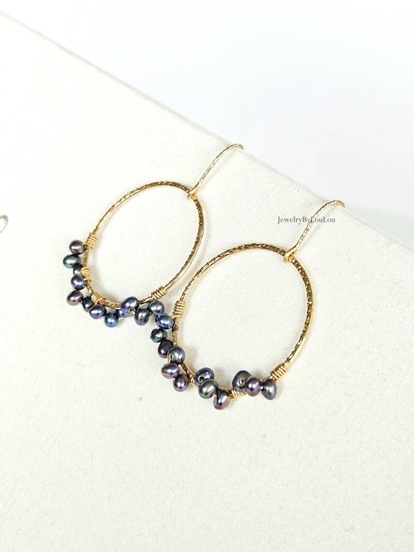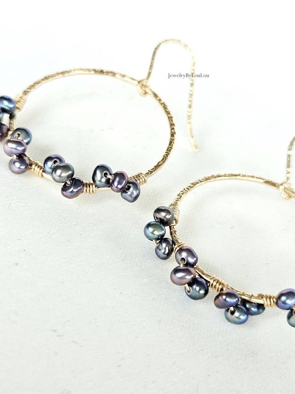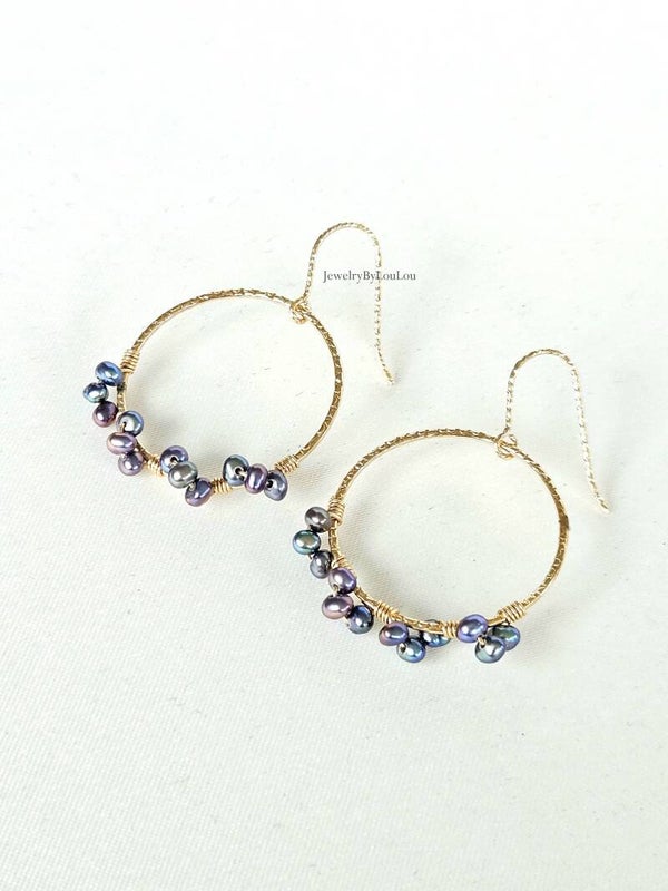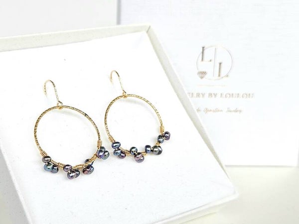 Peacock freshwaterpearl earrings, 14k gold-filled