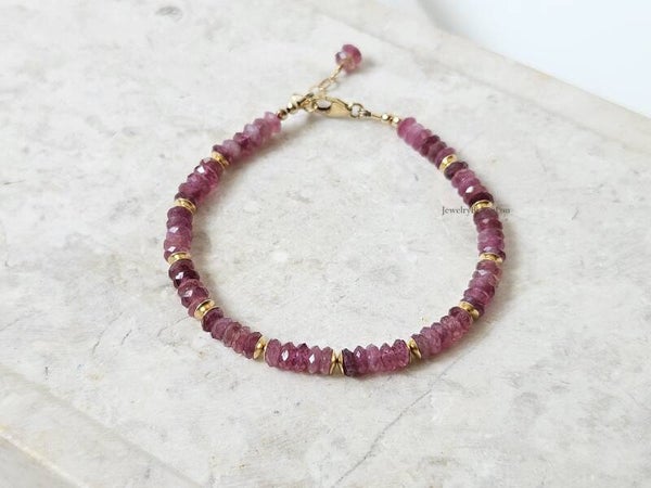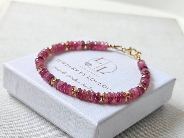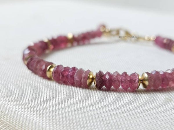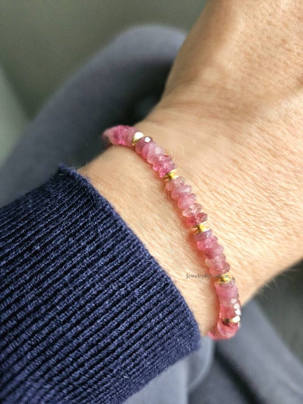 Pink Tourmaline beaded bracelet 4mm, 14k gold-filled - 925 sterling silver
