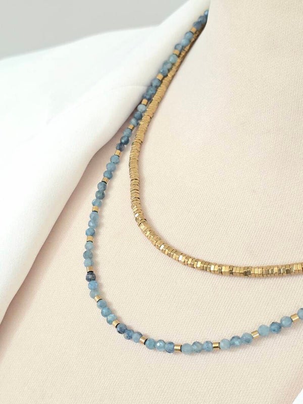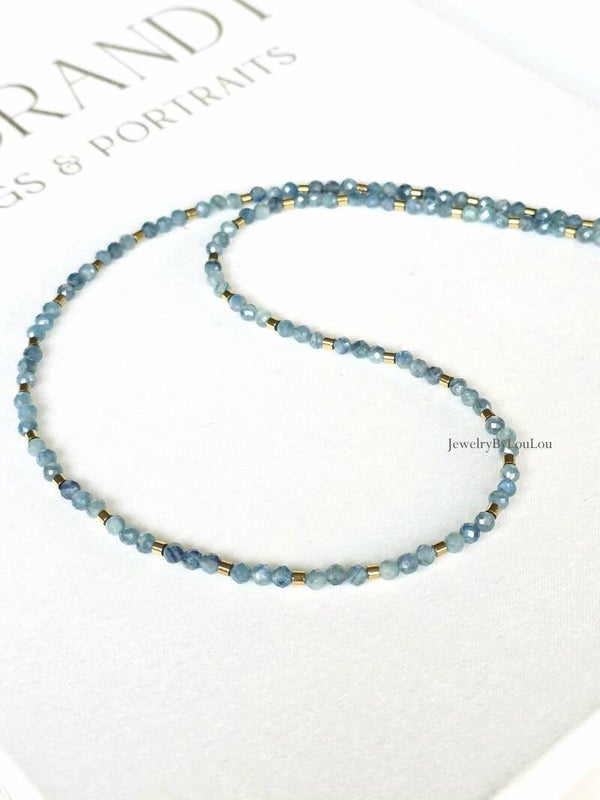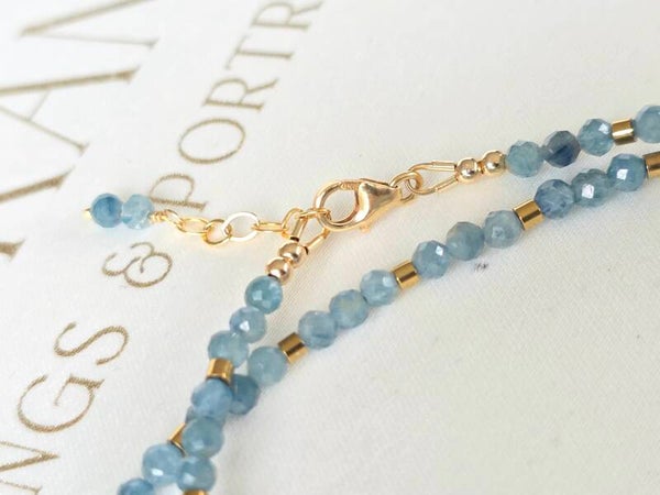 Blue Kyanite beaded necklace, 14k gold-filled, 925 sterling silver