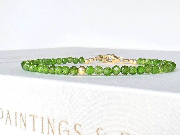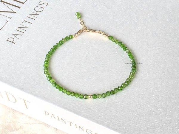 Chrome diopside beaded bracelet, 14k gold-filled - 925 sterling silver