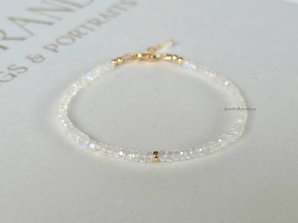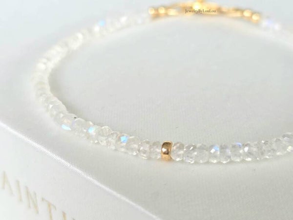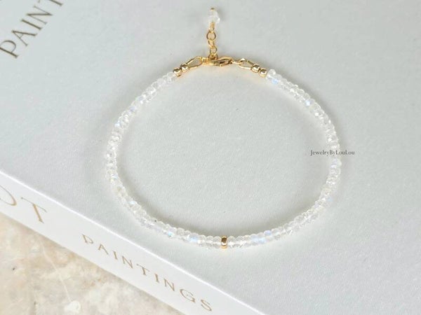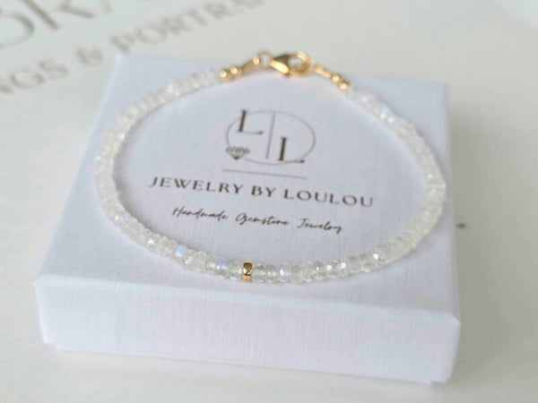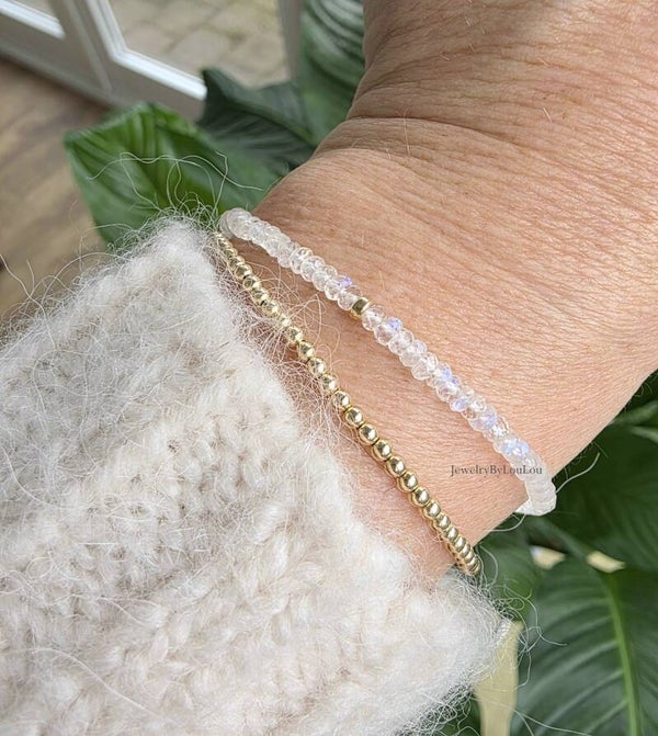Moonstone beaded bracelet, 14k gold-filled - 925 sterling silver