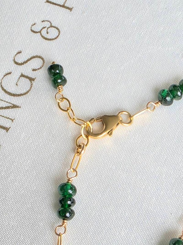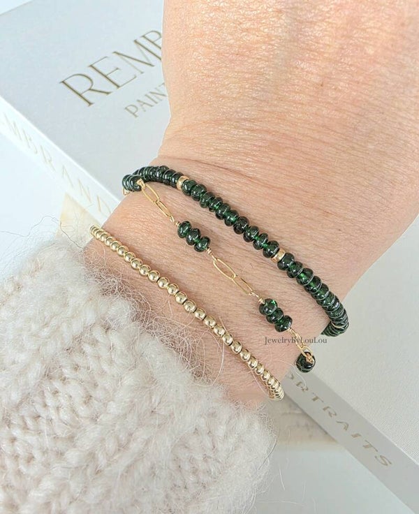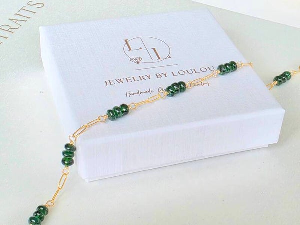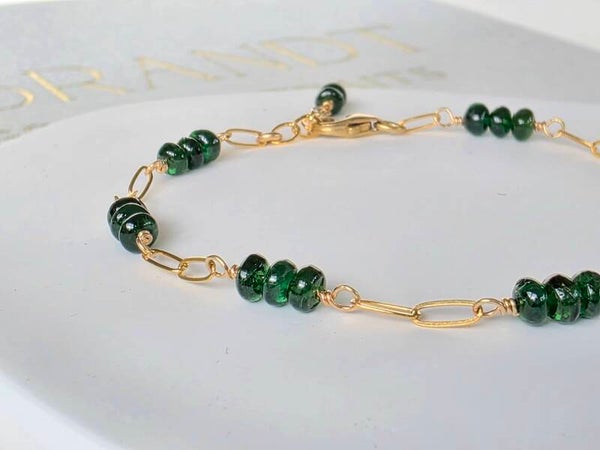 Tsavorite beaded link chain bracelet, 14k gold-filled - 925 sterling silver