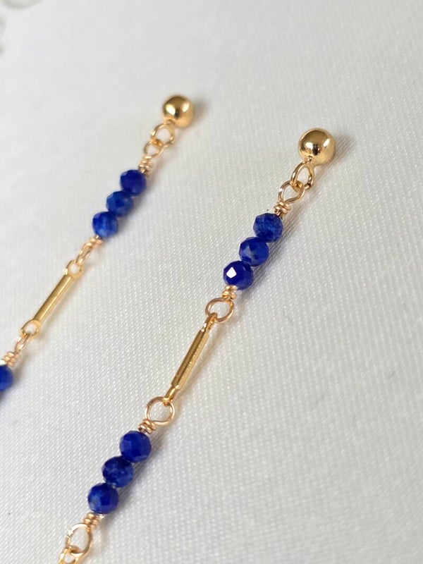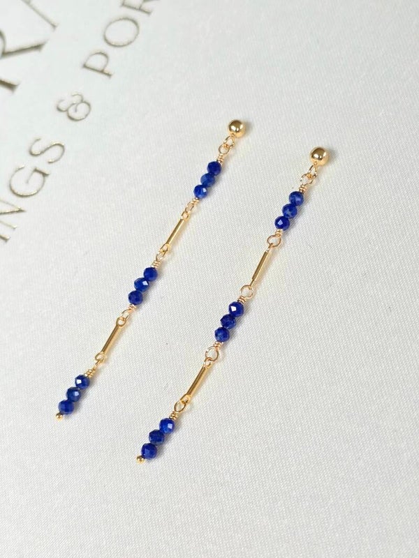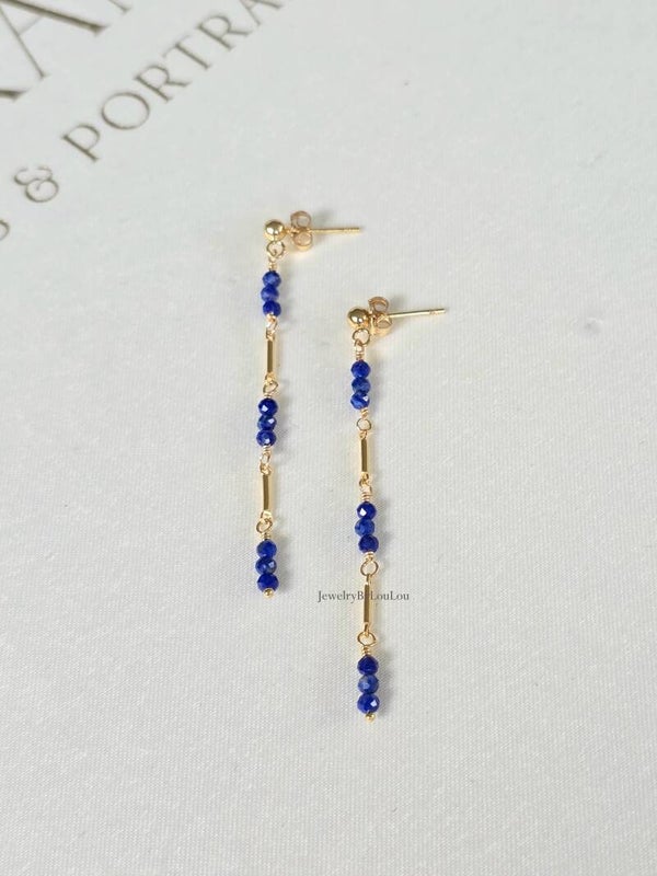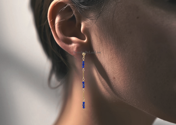 Discover one of our favorites: these handmade delicate long earrings with natural blue Lapis Lazuli beads. The color of the beads is truly beautiful and easy to wear with any outfit.