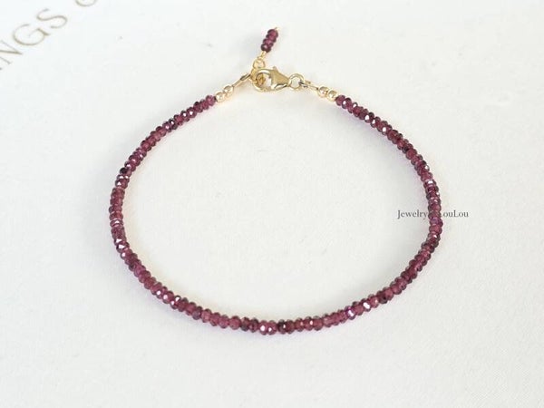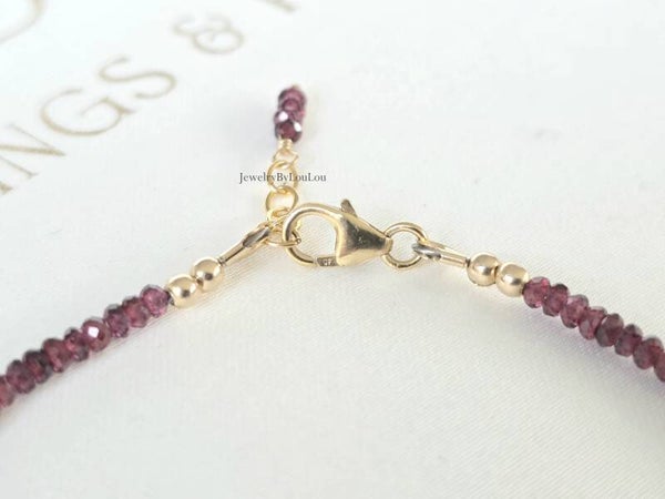 Red Garnet beaded bracelet, 14k gold-filled - 925 sterling silver