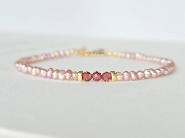 - Malaya Garnet & lavendel pink Freshwaterpearls 3mm
