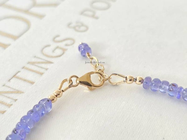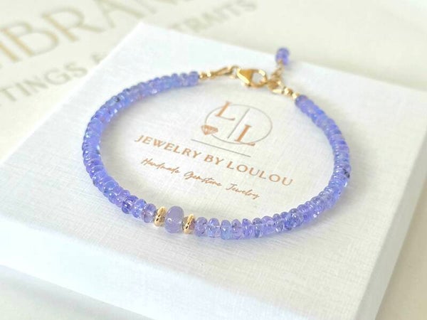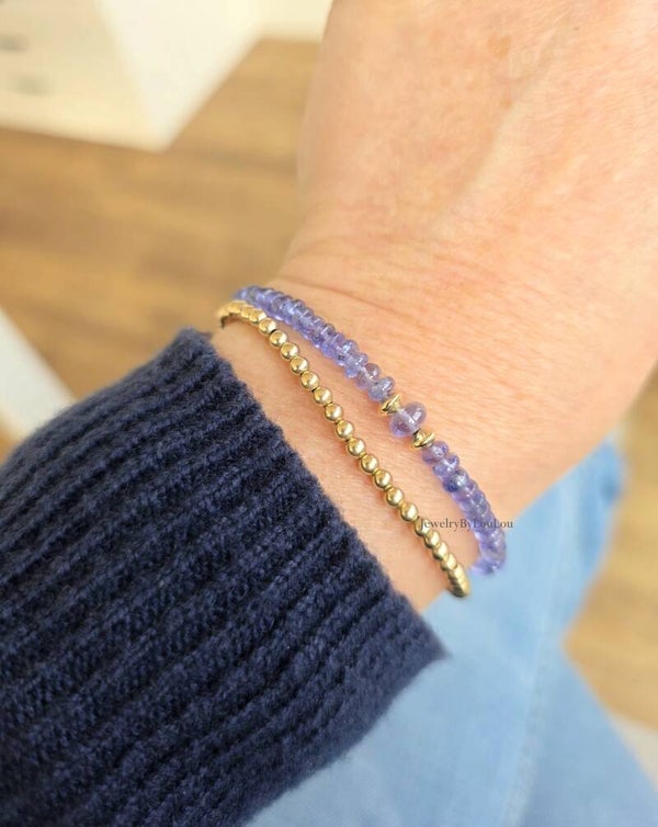 Discover the timeless elegance of this beautiful warm Tanzanite bracelet. Featuring natural beads, this bracelet adds beauty and finesse to your wrist. Whether for an everyday look or a special occasion, this Tanzanite beauty is the perfect accessory to add a touch of elegent sparkle to your outfit.