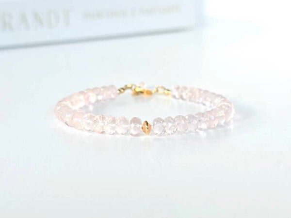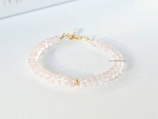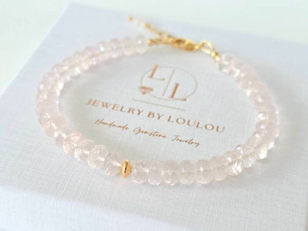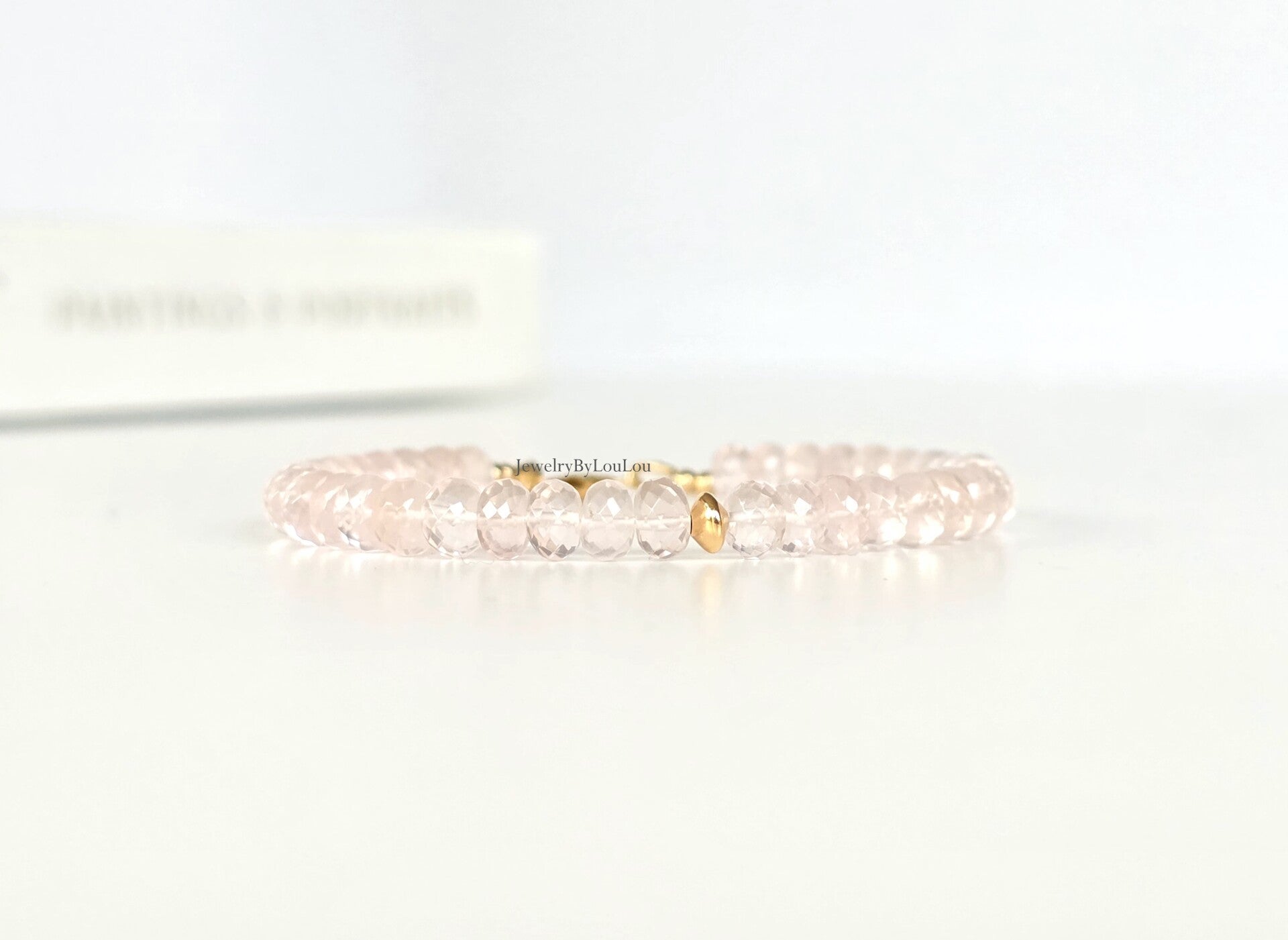 A truly dream of a bracelet, the beautiful soft pink color of the rose quartz beads radiates elegance and love and is a wonderful gift for yourself or for someone you love very much.