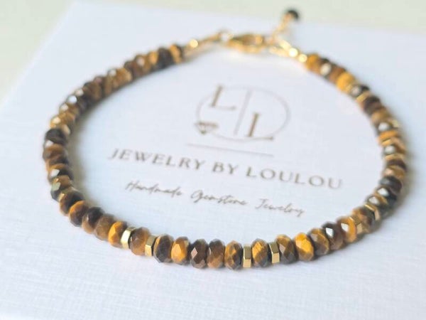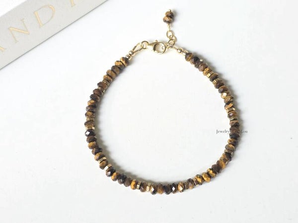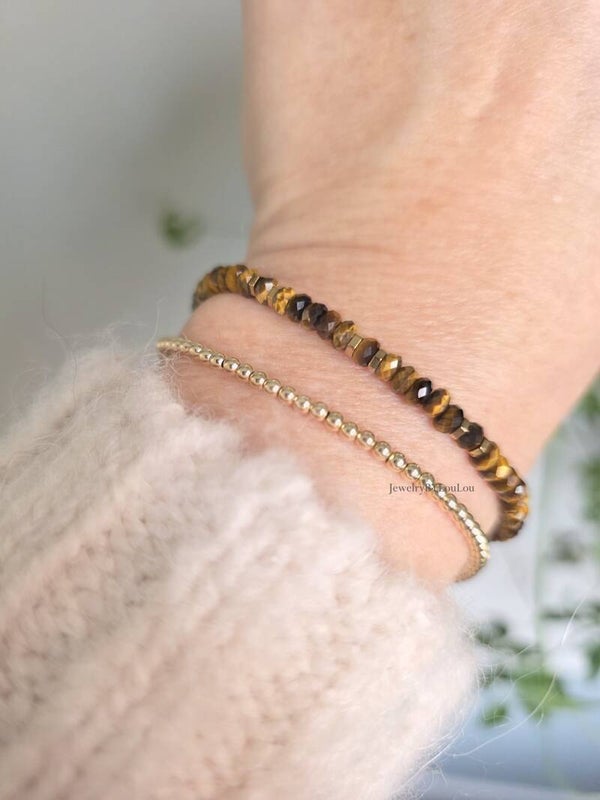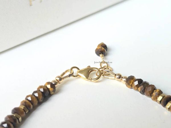 Tiger's eye beaded bracelet, 14k gold-filled - 925 sterling silver