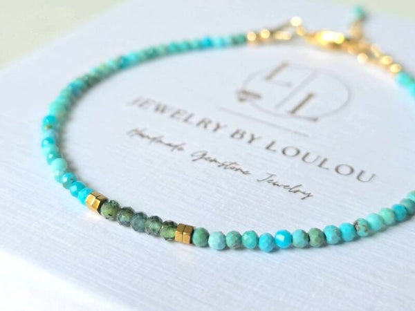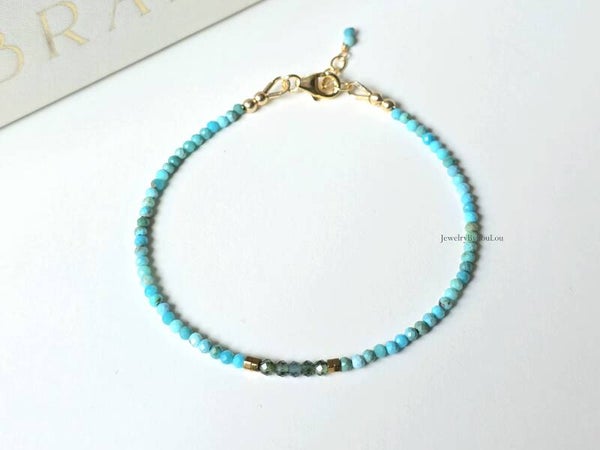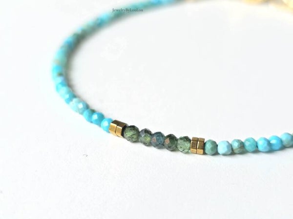Turquoise and Tourmaline beaded bracelet 2mm, 14k gold-filled - 925 sterling silver