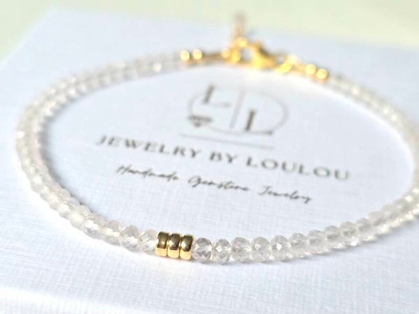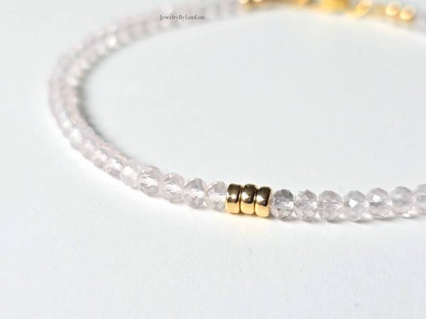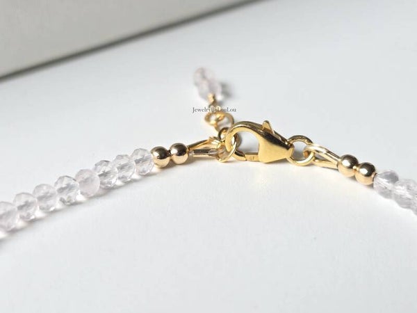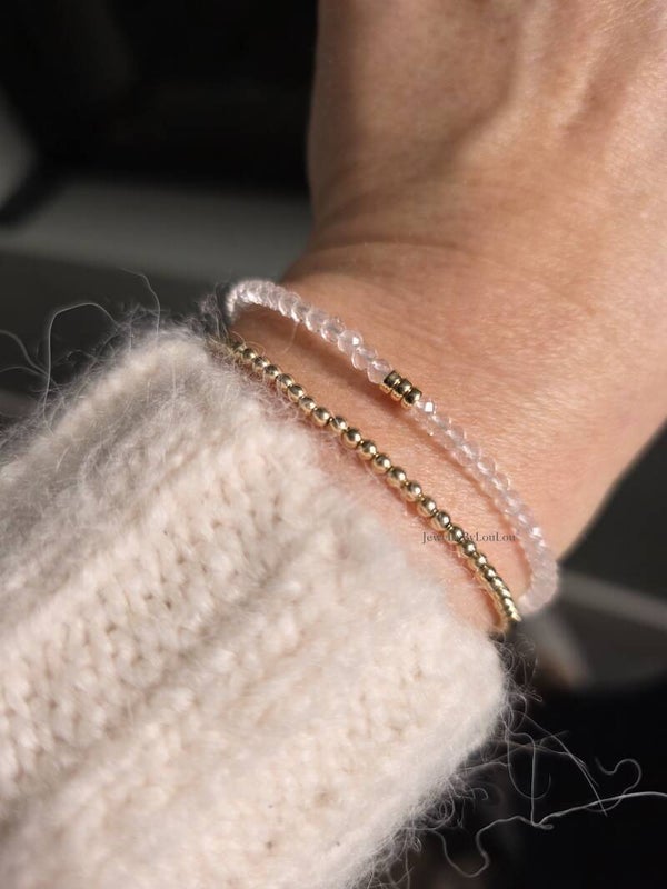 Rose quartz beaded bracelet, 14k gold-filled - 925 sterling silver