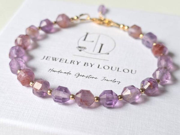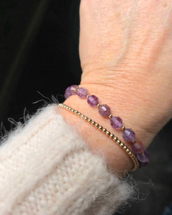 The colors of these super 7 beads are so beautiful, with a vibrant purple color. We've combined them with 14k gold-filled tiny beads, giving this bracelet a timeless look. Pair them with one of our basic bracelets.