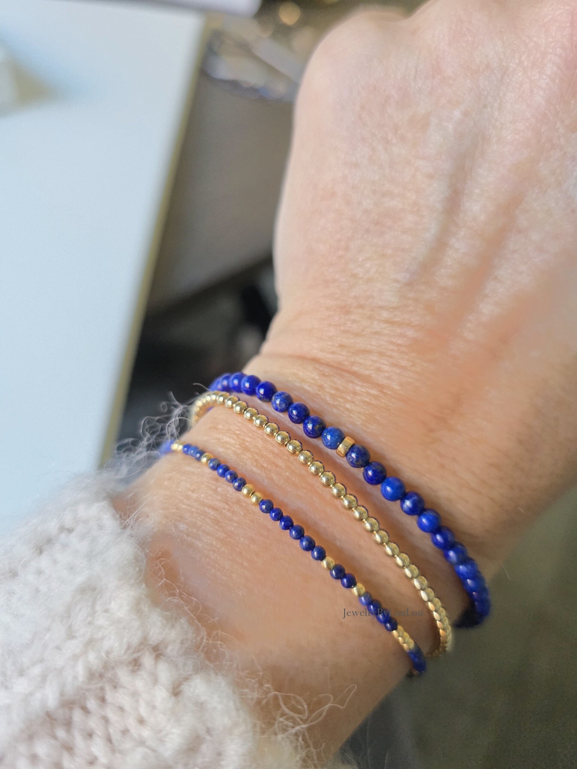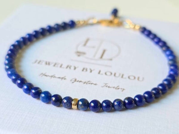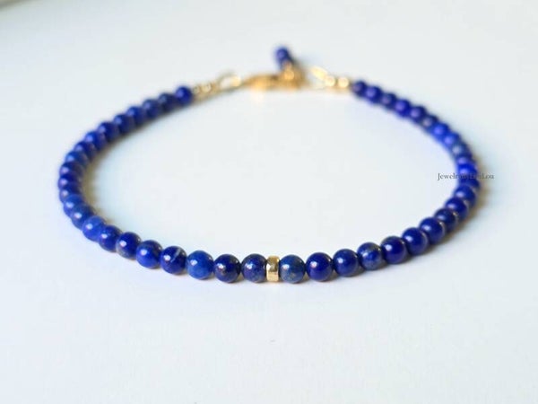 A minimalist beaded bracelet with royal ink blue 3mm Lapis Lazuli beads. Beautiful to wear on its own or to combine with our other bracelets.
