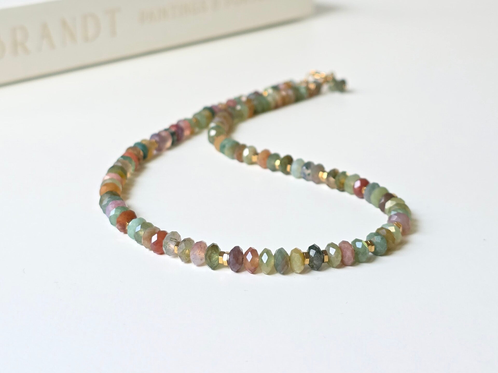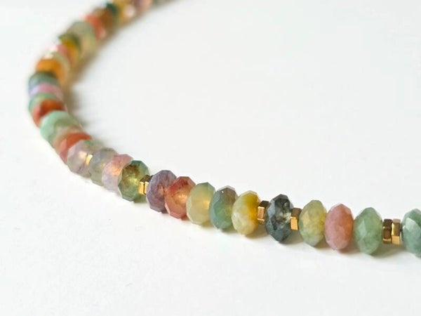 Indian Agate choker necklace, 14k gold-filled - 925 sterling silver