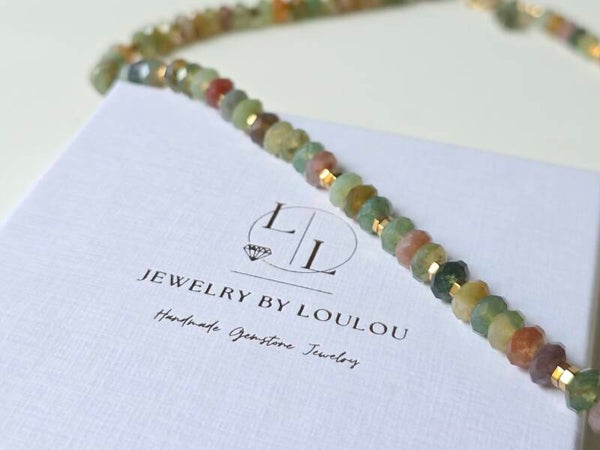 A favorite from our fall collection: this choker necklace with truly beautiful Indian agate beads. The colors of these beads complement all the earth's colors beautifully; this lovely choker completes any outfit.