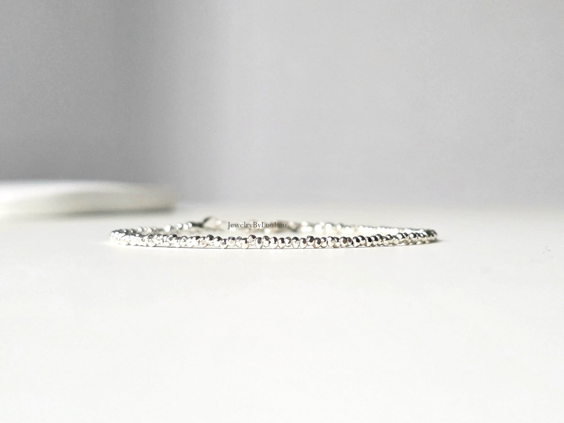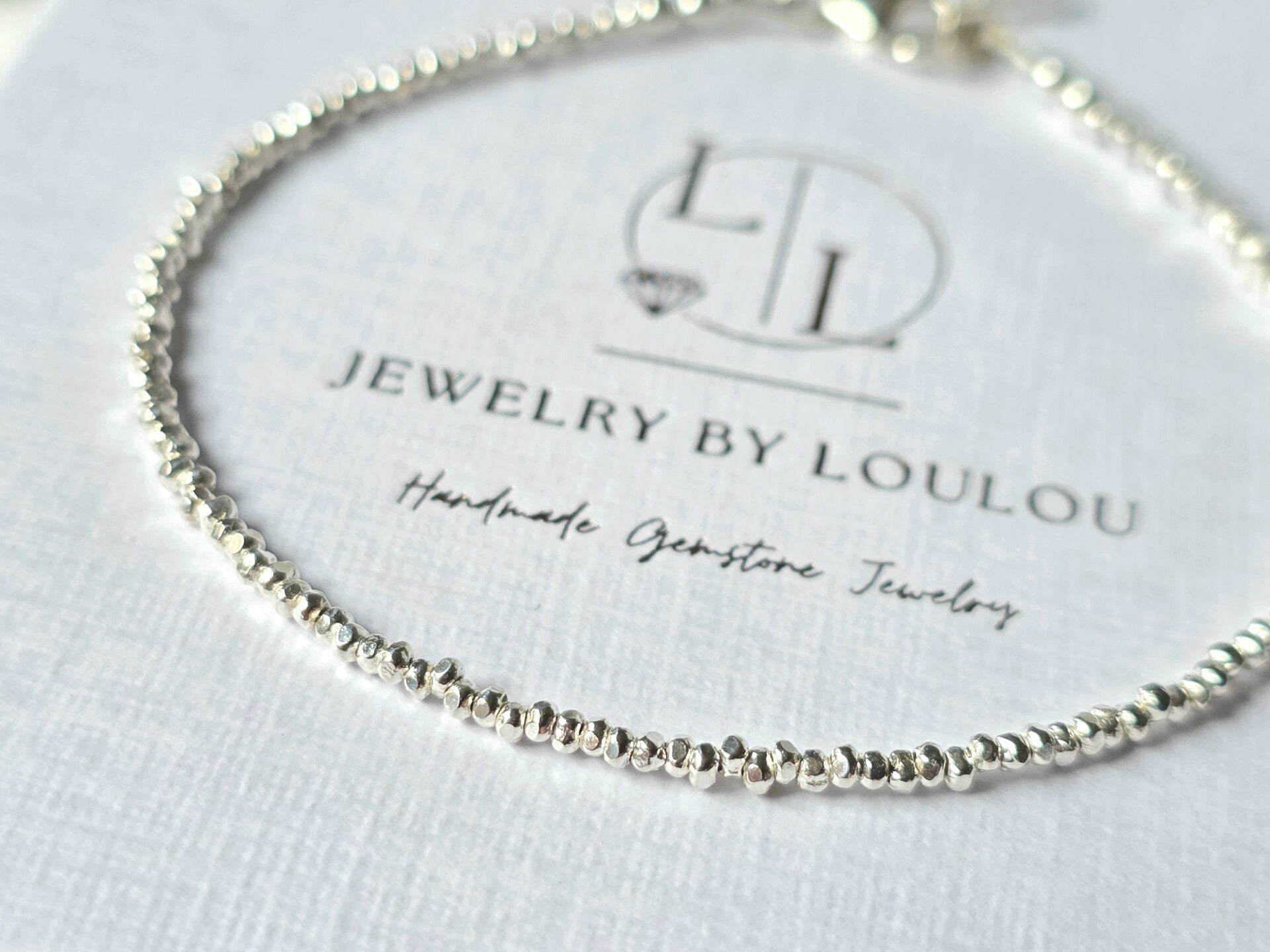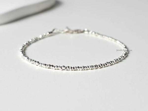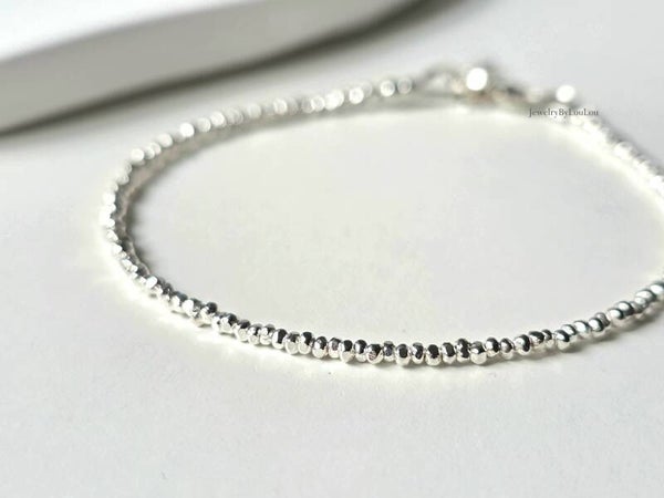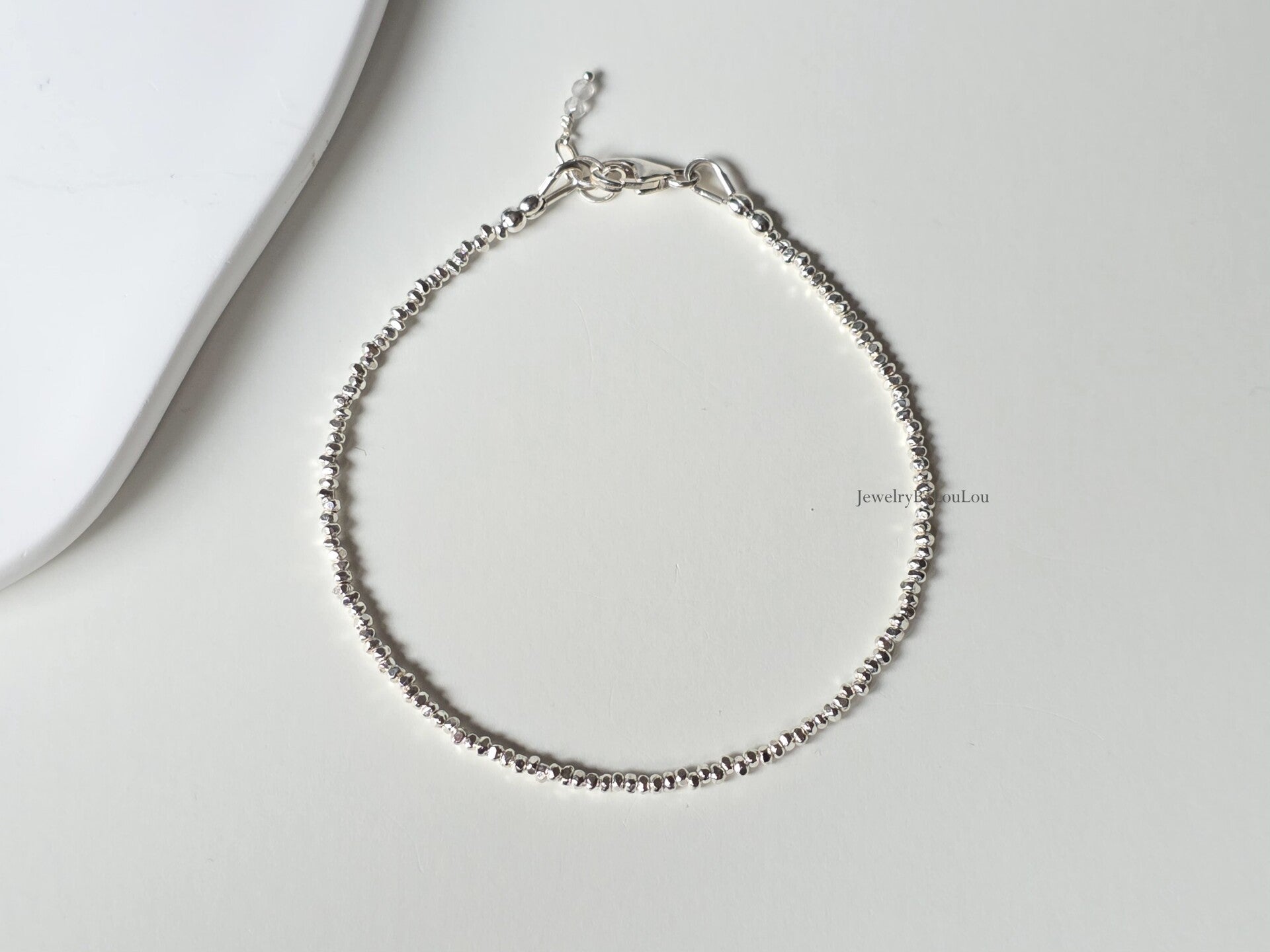 Beautiful minimalist bracelet with 2mm Karen Hill Tribe 925 sterling silver nugget beads. Beautiful on its own, but also looks stunning layered with other bracelets.