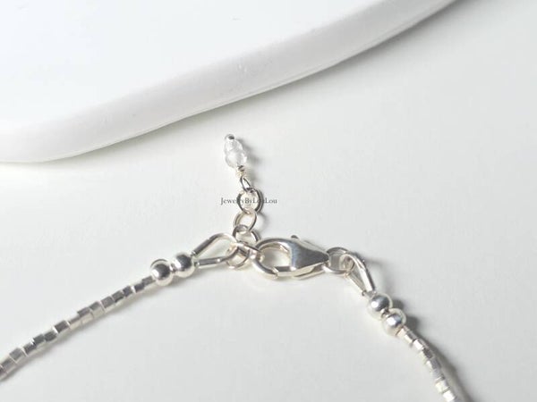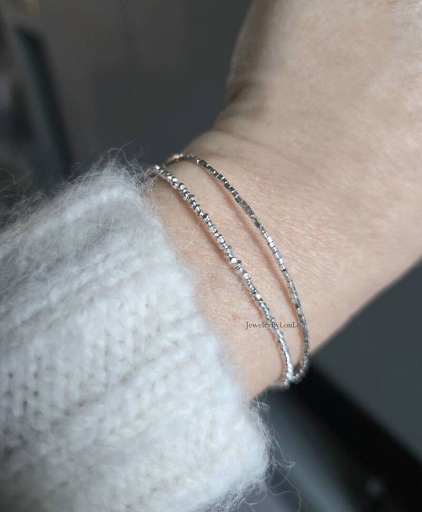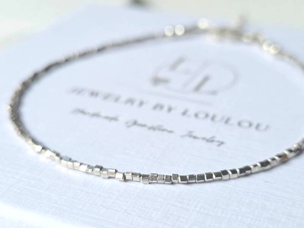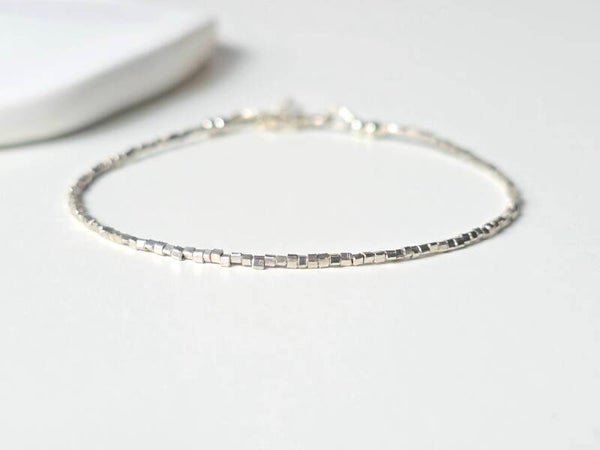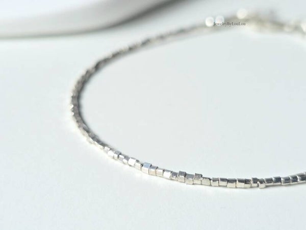 Beautiful minimalist bracelet with 1mm Karen Hill Tribe 925 sterling silver cube beads. Beautiful on its own, but also looks stunning layered with other bracelets.