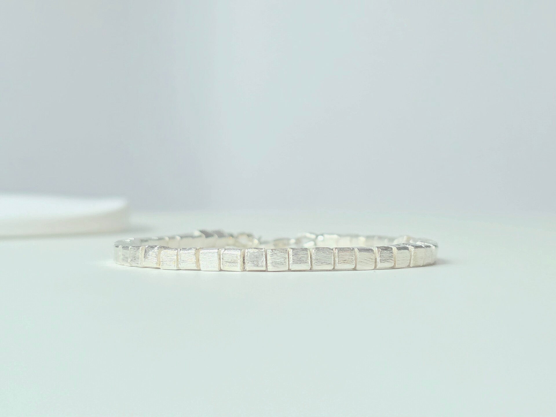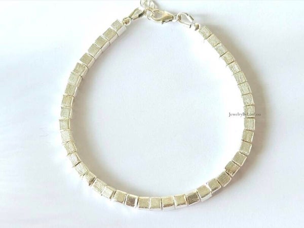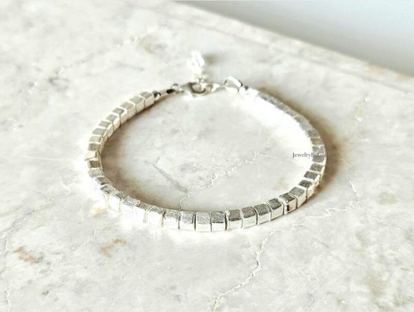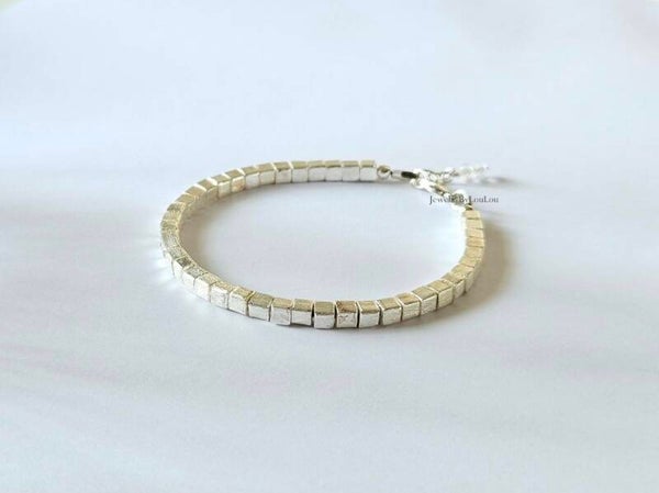 Silver cube shape beaded bracelet, 925 sterling silver