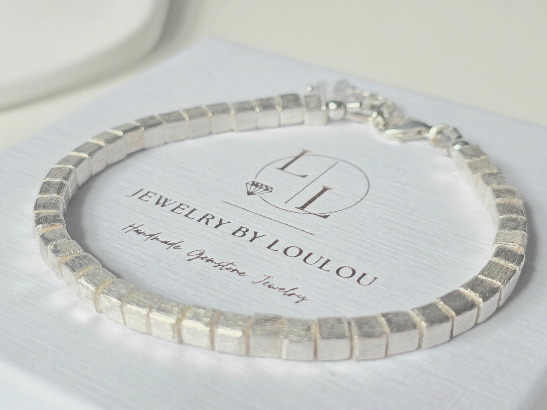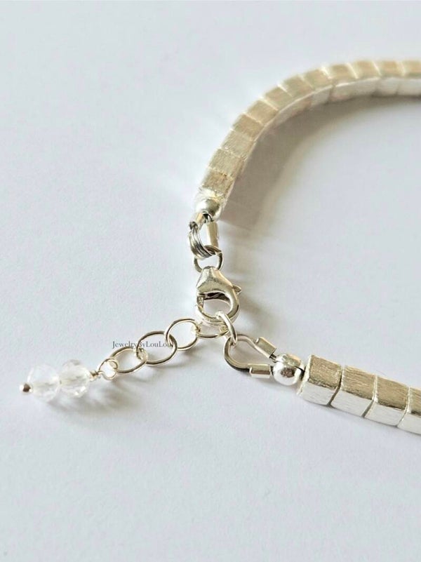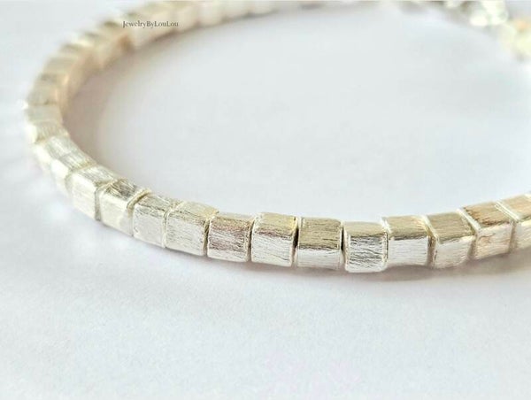 The cube-shaped beads are brushed silver, giving them a beautiful matte silver sheen.