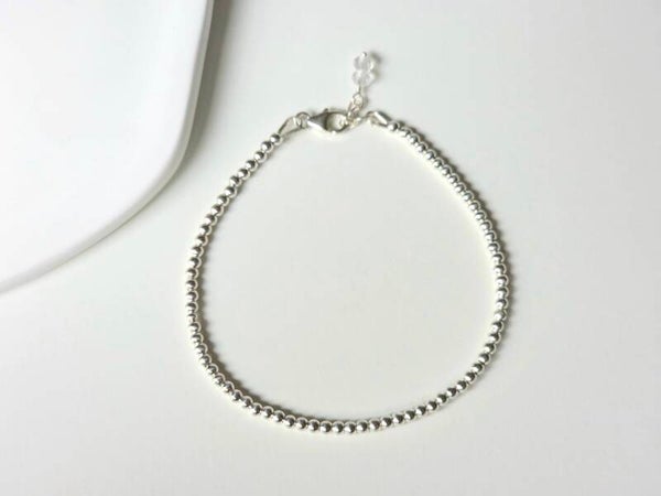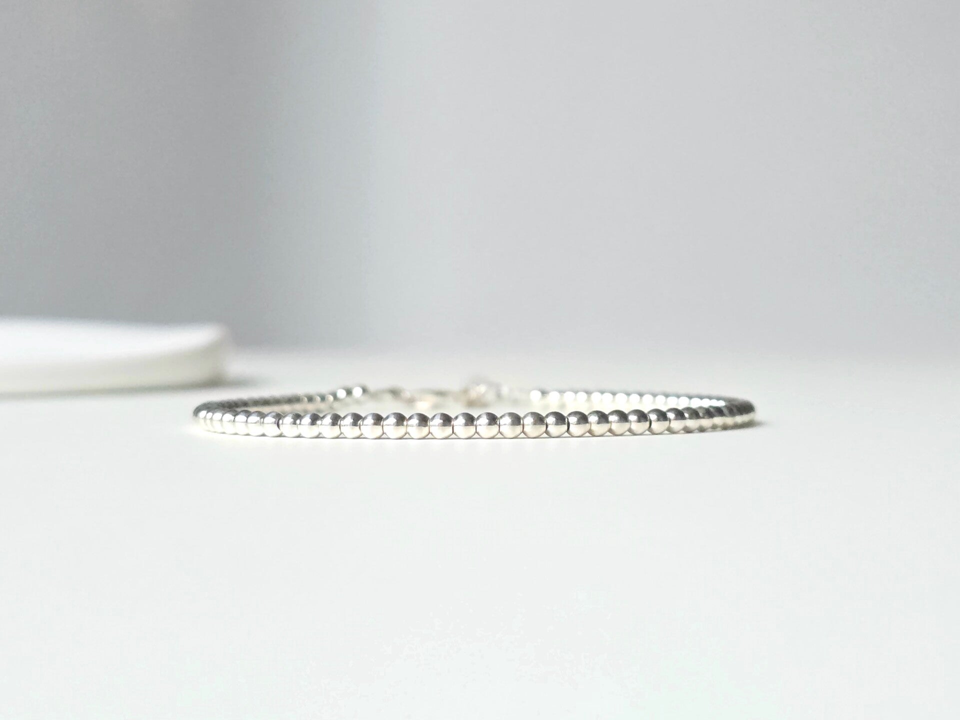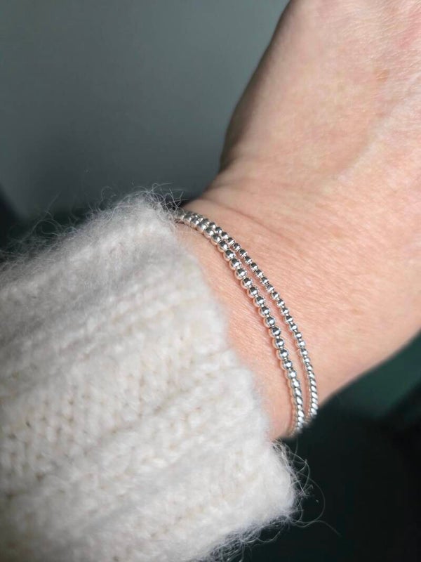 Beautiful minimalist bracelet with 2,5mm round 925 sterling silver beads. Beautiful on its own, but also looks stunning layered with other silver bracelets or our gemstone bracelets.