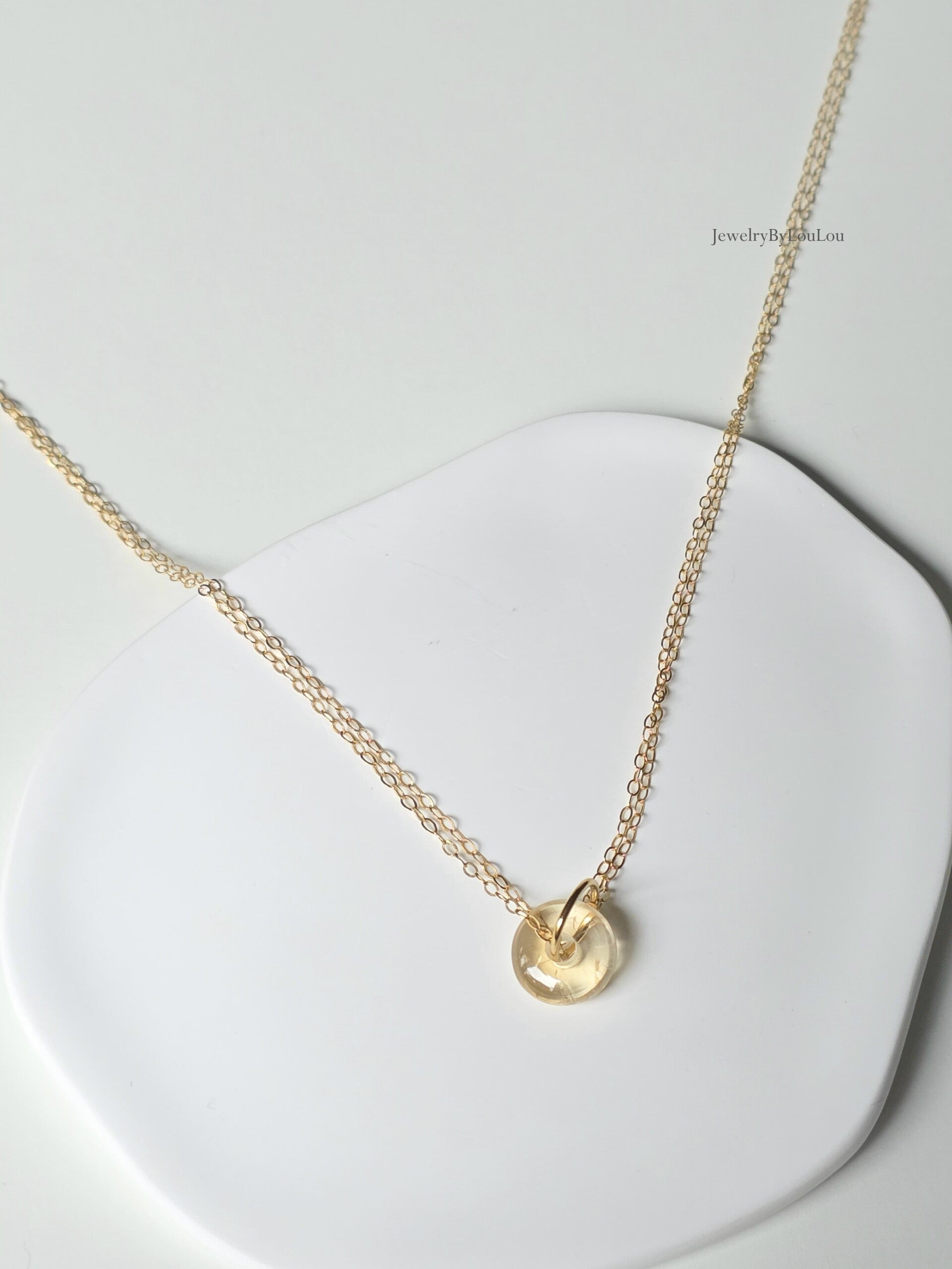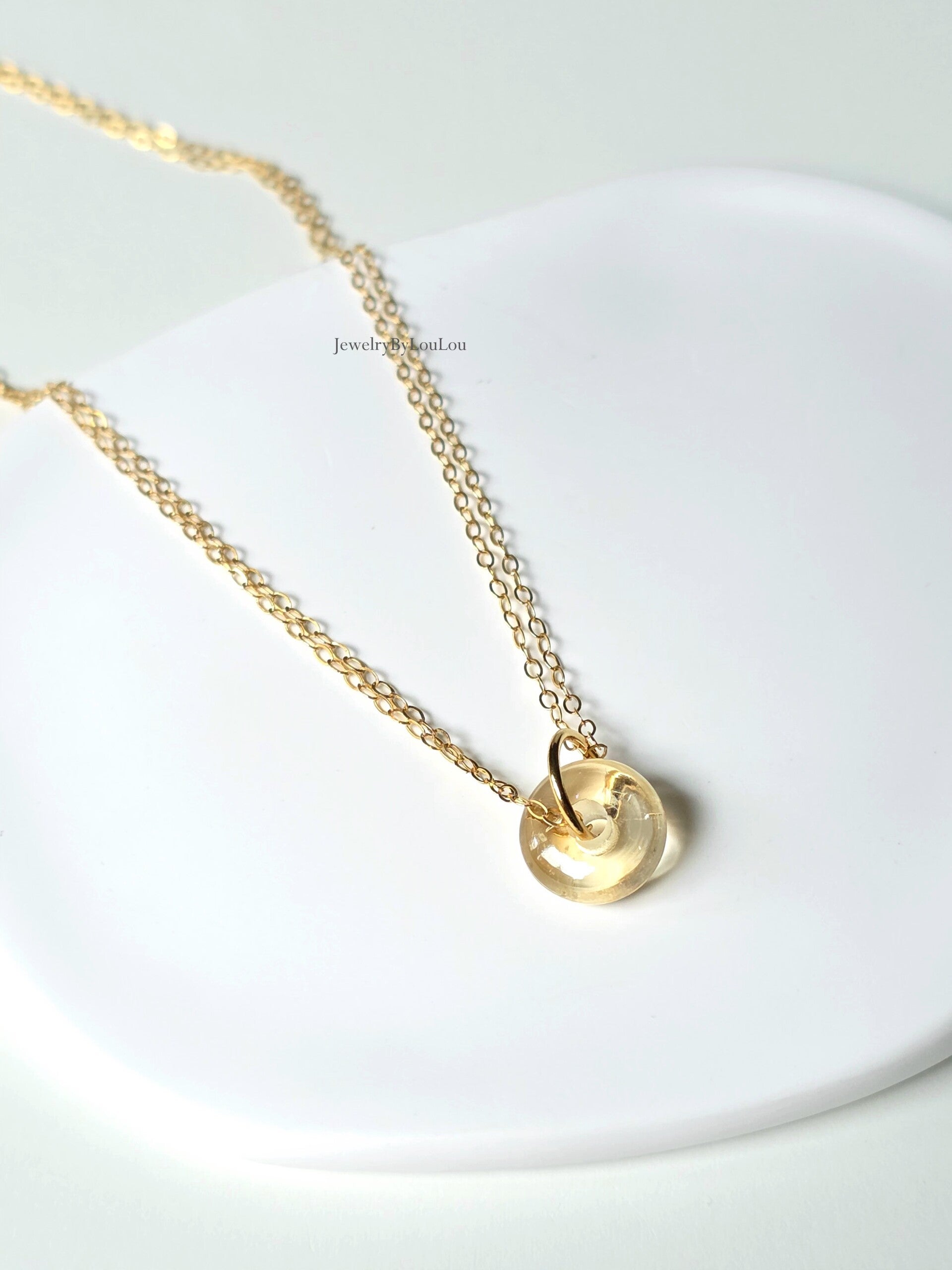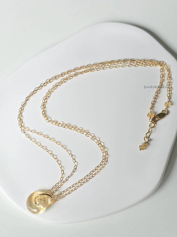 Refined and made with love, this beautiful necklace features a natural citrine circle of warmth and confidence. Linked to a delicate 14k gold-filled ring and necklace, it radiates subtle beauty... a gift for yourself or to give to a loved one.