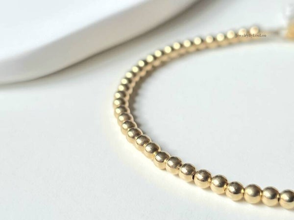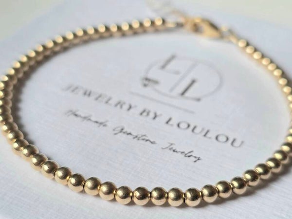 Beautiful minimalist bracelet with 3mm round 14k goldfilled beads. Beautiful on its own, but also looks stunning layered with other silver bracelets or our gemstone bracelets.