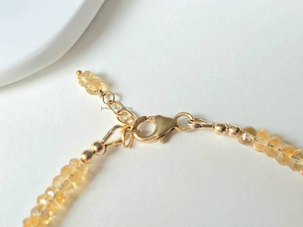 Citrine beaded bracelet, 14k gold-filled - 925 sterling silver