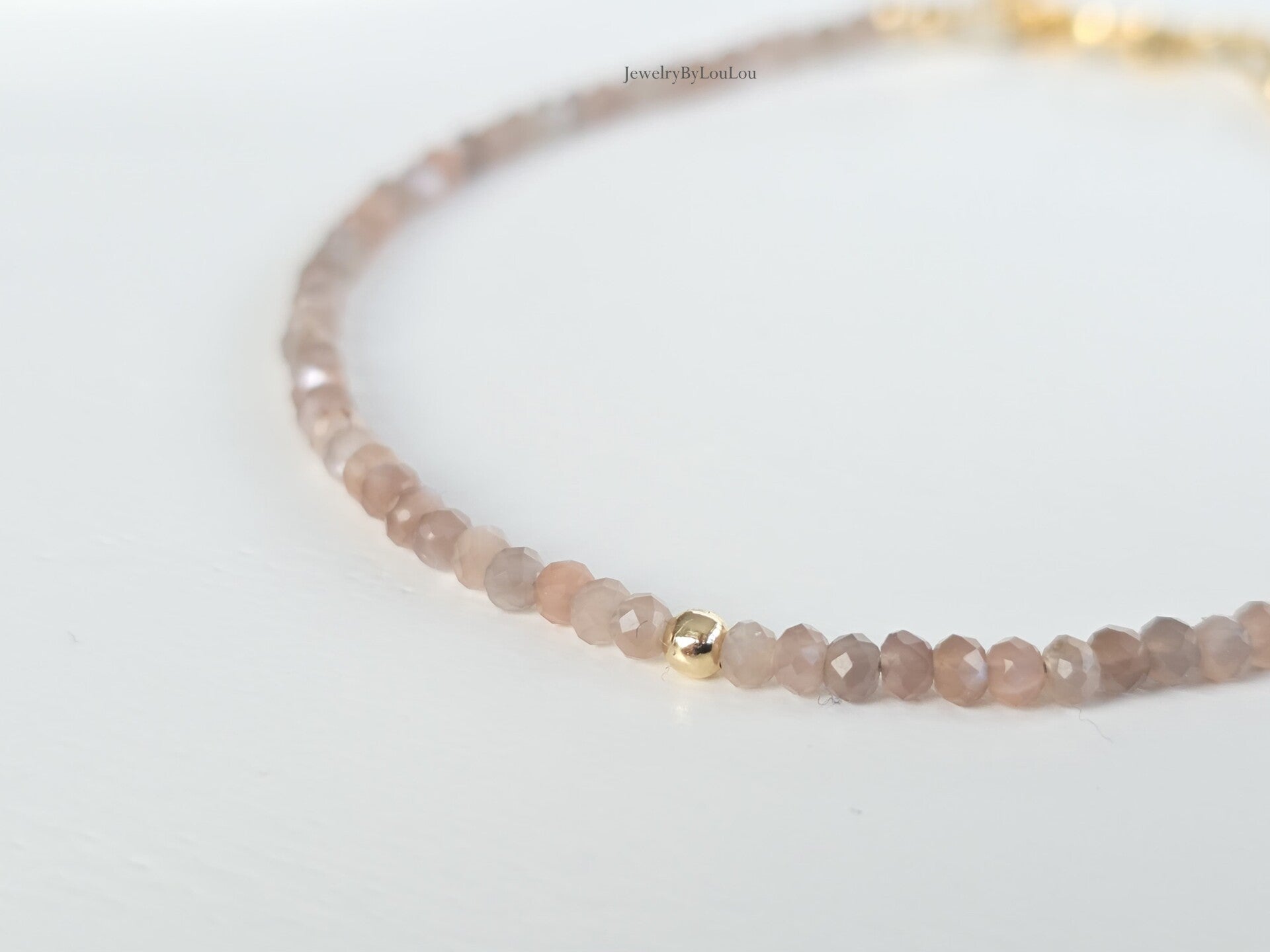 Grey Moonstone beaded bracelet, 14k gold-filled - 925 sterling silver