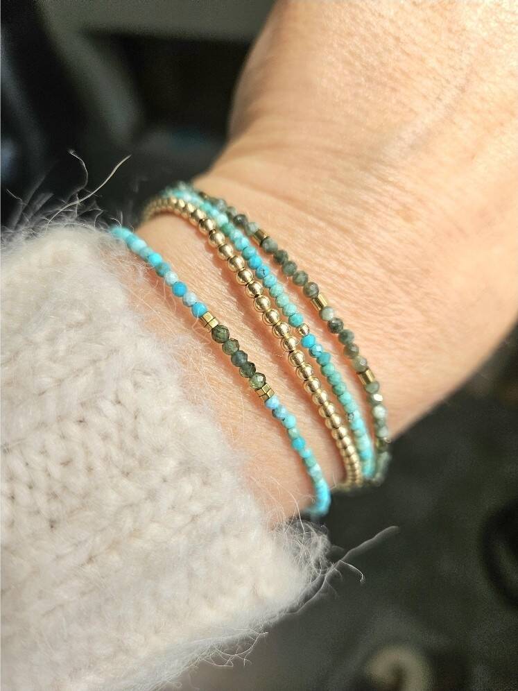 Turkoois armband 2mm, 14k goldfilled - 925 sterling zilver