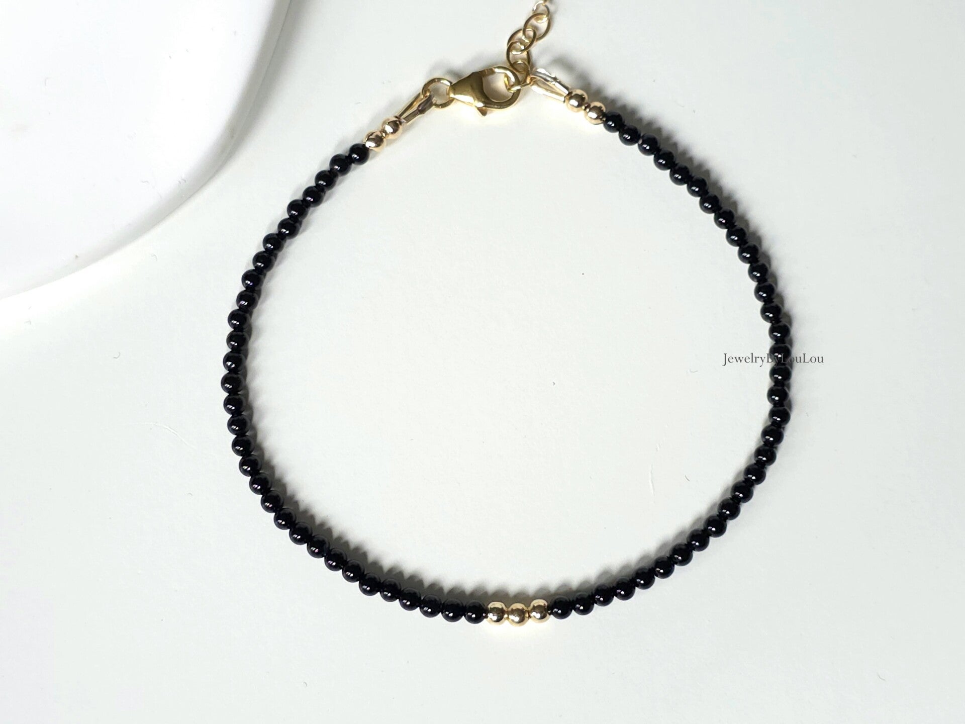 Zwarte Onyx kralen armband, 14k goldfilled - 925 sterling zilver
