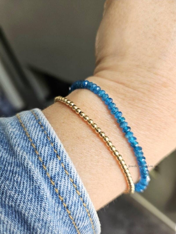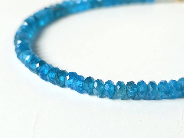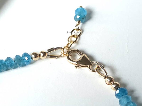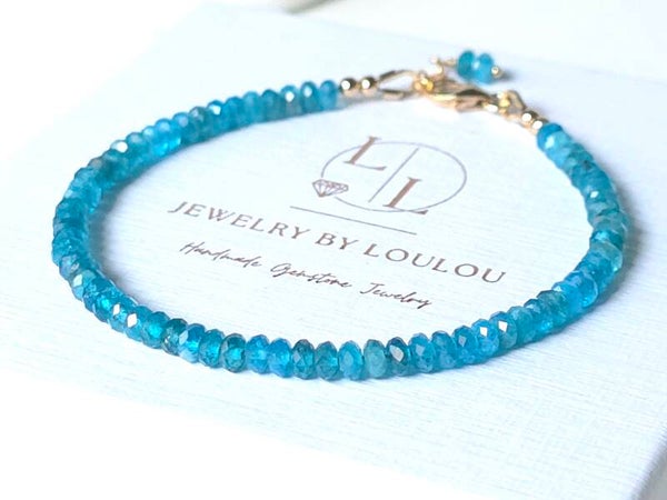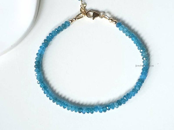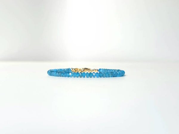 Prachtige armband met natuurlijke facet geslepen neon Apatiet kralen. De diep aqua blauwe kralen zijn zo prachtig van kleur dat ik verder niets heb toegvoegd aan het ontwerp van de armband.