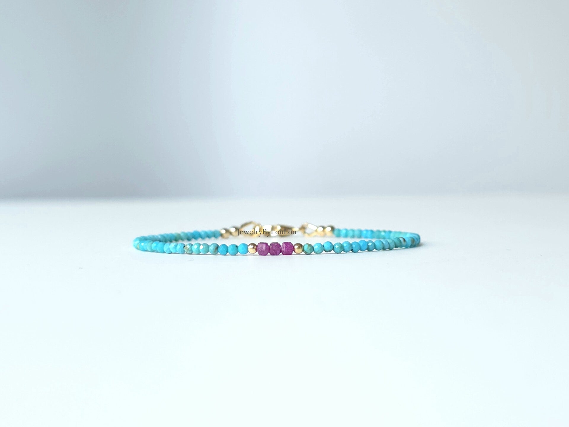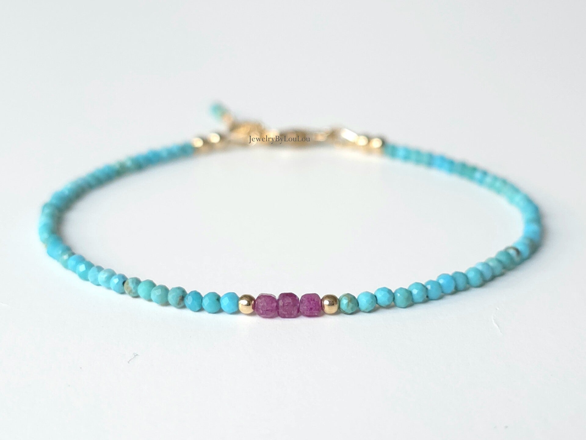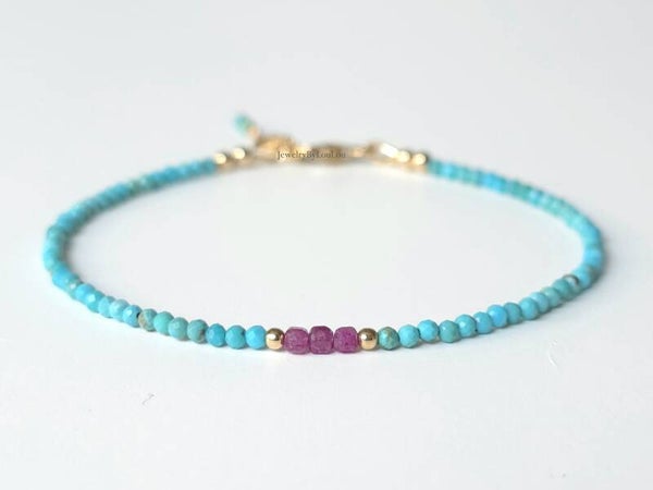 Turkoois en Robijn armband 2mm, 14k goldfilled - 925 sterling zilver