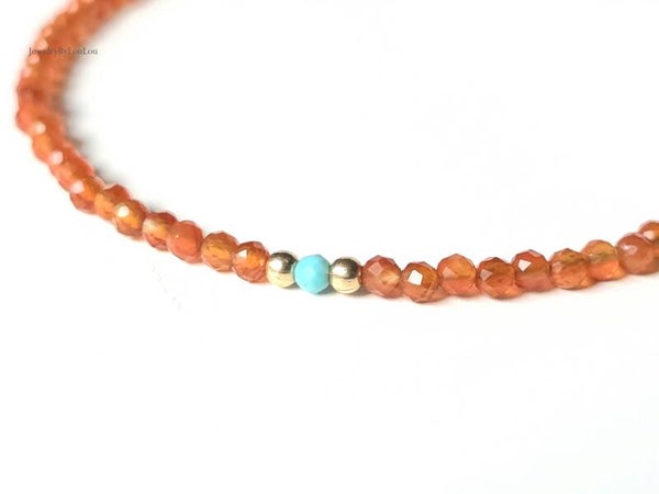 Carneool en Turkoois armband 2mm, 14k goldfilled - 925 sterling zilver