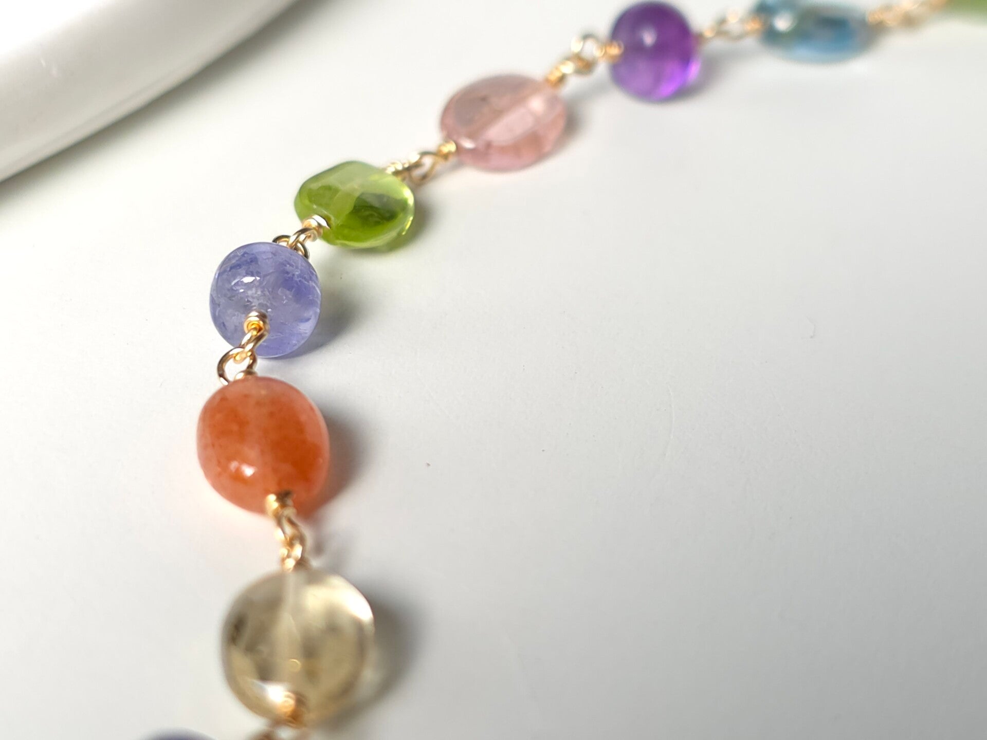 Prachtige multi edelstenen kralen armband met 14k goldfilled schakels. Voor deze armband heb ik heel veel kleurrijke edelstenen bij elkaar gezocht en verschillende vormen en deze mooie armband van gemaakt. Een armband die je dagelijks kunt dragen en met een vrolijke energie.