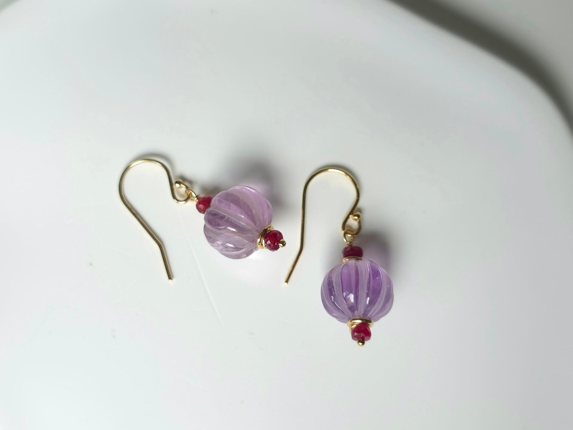 Amethist een beschermende, zuiverende en kalmerende steen. Ik heb deze mooie en keuke oorbellen gecombineerd met kleine facet geslepen Robijn kraaltjes en een sierlijk 14k goldfilled oorhaakje. Voor de zilver liefhebber ze zijn ook leverbaar in 925 sterling zilver. Zelf houd ik heel erg van deze aparte kleuren combinaties waarin de kleuren en de stenen elkaar versterken.