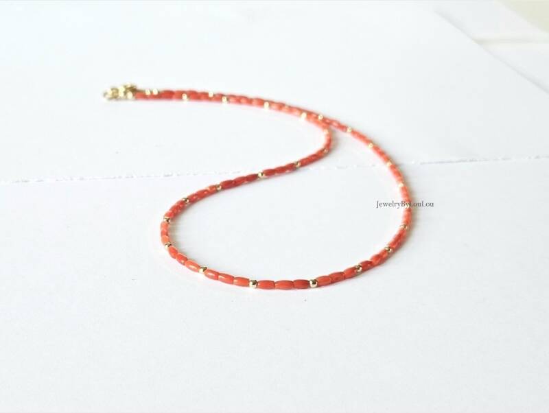 Italian coral necklace with red coral beads, handmade, genuine untreated Mediterranean coral choker in 14k gold-filled, silver
